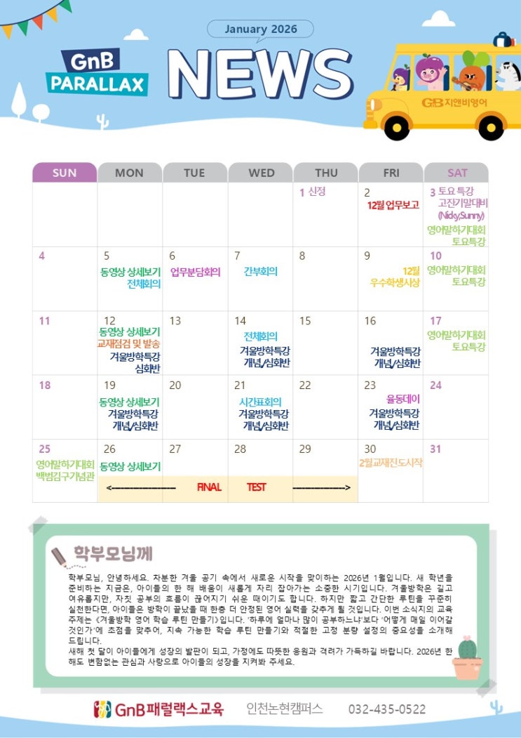 [지앤비 어학원] 2026년 1월 소식지
