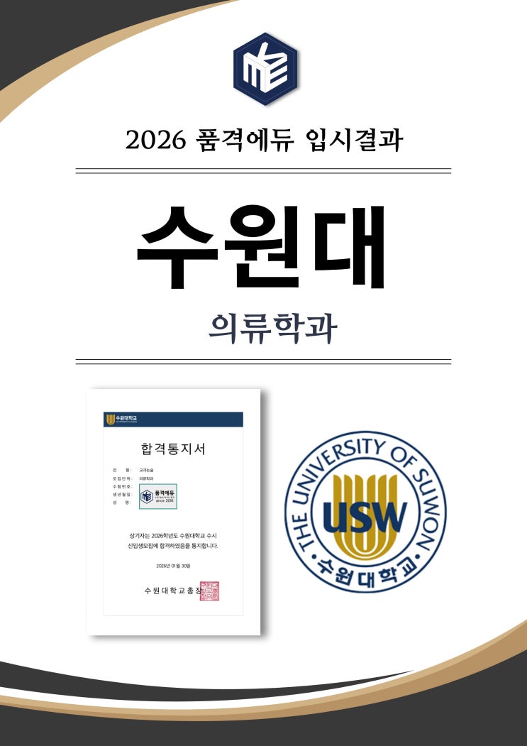 [품격에듀 2026 입결] 수원대 의류학과 합격! 수학의 품격 영어의 품격 국어의 품격