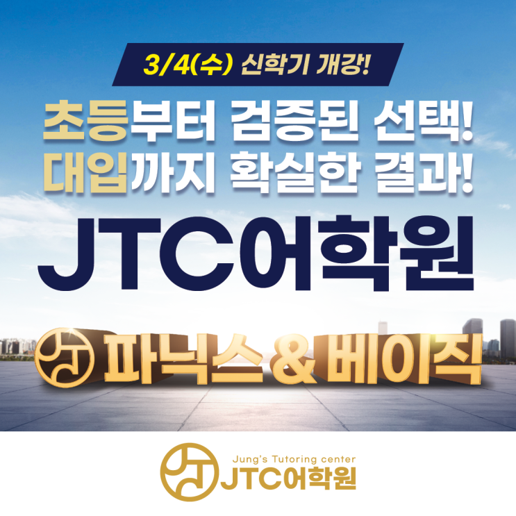 [3/4(수) 개강] 민락동영어학원 JTC어학원, 초등 파닉스&베이직 모집 안내