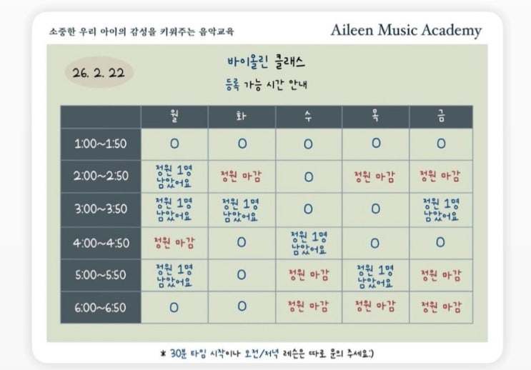 에일린음악학원/에일린바이올린/2월바이올린스케줄