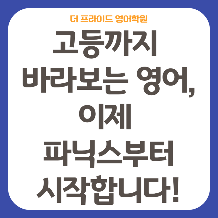 영어의 시작도, 방향이 중요합니다. 그동안 더 프라이드는 초4부터 고3까지, 일대일 개별진도 시스템으로 운영해왔습니다. 같은 학년이라고 해서 같은 실력을 가지고 있는 것은 아니기 때문에, 저희는 늘 아이의 현재 위치에서 출발했습니다. 누군가는 단어에서 막히고, 누군가는 해석에서 막히고, 누군가는 문장 구조에서 멈춥니다. 그래서 저희는 ‘반 전체 진도’가 아닌 ‘아이 한 명의 진도’로 수업해왔습니다. 그 시간들이 쌓여 중등 내신 성적 향상, 고등 1등급이라는 결과로 이어졌습니다. 그런데 상담을 하다 보면 학부모님들께 이런 말씀을 자주 듣습니다. “조금만 더 일찍 제대로 시작했으면 좋았을 것 같아요.” “파닉스를 어디서....... <img src="https://blogthumb.pstatic.net/MjAyNjAyMjVfMjQ3/MDAxNzcxOTk0MTU4MjA4.eMhVRC295-EEORjPrseV6LwbHZ4pXFKHEP6DUgjQqj0g.XOjco_jr_lQGXV1HPyLY8XNdUrb1xE59K_1jsQjfGD4g.PNG/5.png?type=s3" />
