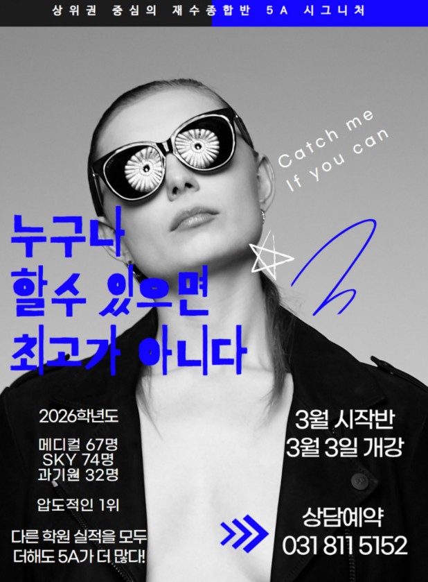 2027학년도 수능을 위한 3월 시작반을 개강합니다. 매년 일산에서 압도적인 결과를 자랑하는 5A는 2026학년도 입시에서도 홈페이지나 블로그 등을 통해 확인할 수 있는 모든 학원의 실적을 더한 것보다도 많은 합격생을 배출했습니다. 마지막 선택형 수능에 해당하는 2027학년도 입시에서도 압도적인 결과를 만들어 낼 것이라 믿습니다. 학생 / 학부모 만족도 최고인 5A 시그니처에서는 3월 시작반을 3월 3일(화)에 개강합니다. 꼭 필요한 수업만 듣고 전국 최고의 멘토시스템을 통해 나에게 필요한 조언과 학습을 받을 수 있는 5A 시그니처에서 올해 수학 강화반을 런칭합니다. 수업을 듣고 나에게 지정된 메디컬 / SKY 멘토진에게 1:1로 과외를....... <img src="https://blogthumb.pstatic.net/MjAyNjAzMDJfODkg/MDAxNzcyNDE4NDM2MDYz.mV6XGHafdundGMDm4Y2ZWYLL_-XhP0LNUOEVtwAsNwkg.0W0MDnPuQAexIYaIaBdM88r757CzgMqvyNkWPGvetCsg.JPEG/1.jpg?type=s3" />