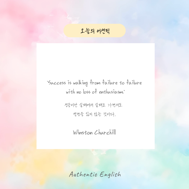 “Success is walking from failure to failure with no loss of enthusiasm.” 성공이란 실패에서 실패로 가면서도 열정을 잃지 않는 것이다. Winston Churchill <img src="https://blogthumb.pstatic.net/MjAyNjAxMjhfMTk2/MDAxNzY5NTk1MjE1MTgw.xDNP0e3Pl2mZRBWWziVitw2JbWUmztaR7xyiZNXkTcUg.AOaQp2ijNnj7gXEyIm2WdrCY4oBwRHFUjs-S0f2uZtUg.PNG/023.png?type=s3" />
