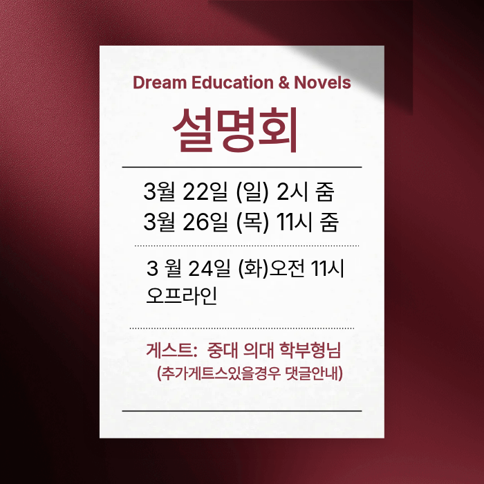 상담신청서 작성해주세요 / 설명회 신청해주세요 강사소개도 곧 올리도록 하겠습니다 https://forms.gle/LrSfKyWVgRGrnPKF7 <img src="https://blogthumb.pstatic.net/MjAyNjAzMThfMTUy/MDAxNzczODM0Njc1MzEz.IuVbmJzTrOAYRJeSHf4SGqYsEJ39kF386UYRI30KcsMg._8x3aMGRga87myp7OPVZVzBhHDI83C5BUUokpCekcwwg.PNG/image.png?type=s3" />