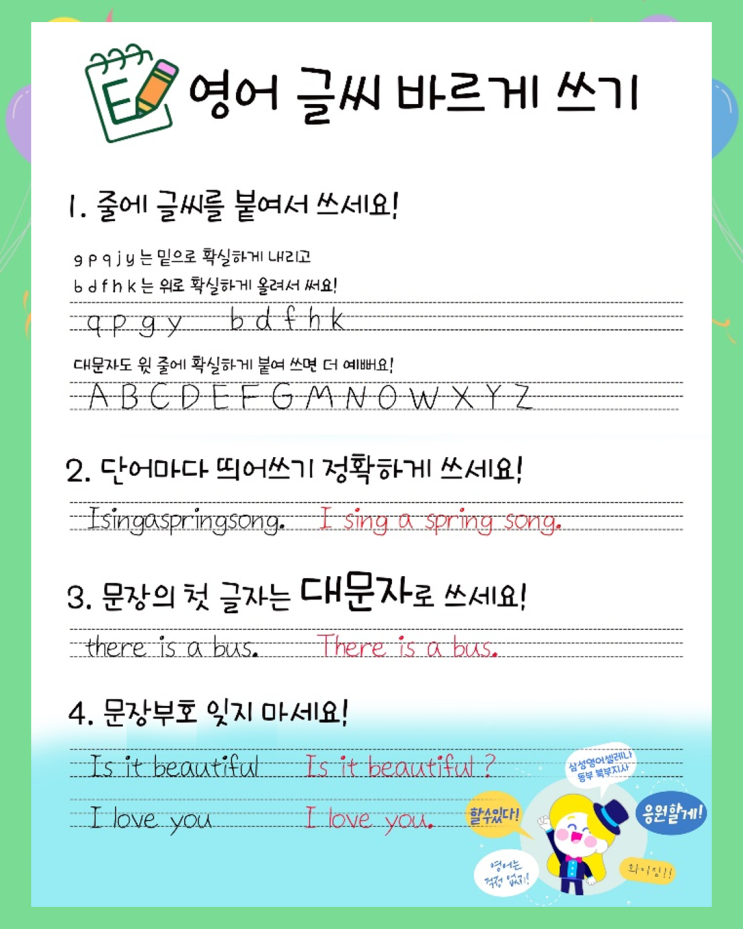 초등 저학년 영어, 반드시 잡아야 할 두 가지 : 소리와 글자의 연결, 그리고 영어 그림책 읽기 초등 저학년 시기는 영어 학습에서 매우 중요한 시기입니다. 이 시기를 어떻게 보내느냐에 따라 이후 영어 실력의 방향이 완전히 달라집니다. 많은 학부모님들이 이 시기에 단어 암기나 문제 풀이에 집중하는 경우가 많습니다. 하지만 영어의 본질은 ‘문제 해결 능력’이 아니라 언어 습득 과정에 있습니다. 따라서 이 시기에는 반드시 다음 두 가지에 집중해야 합니다. 1️⃣ 소리와 글자를 연결하는 능력 (Phonics) 영어는 기본적으로 소리 중심 언어입니다. 글자를 먼저 이해하는 것이 아니라, 소리를 기반으로 언어를 받아들이고 확장해 나....... <img src="https://blogthumb.pstatic.net/MjAyNjAzMTlfMjM2/MDAxNzczODk2ODc5NTIx.JmP4siZ4B7JZWpKpYNXvDBCNzZzHm7DImYYJ94PyZAwg.ovHIffqHARnsuZlLXA7mTy8KODRkZkLXOqC1nLtWdTQg.PNG/ChatGPT_Image_2026%B3%E2_3%BF%F9_19%C0%CF_%BF%C0%C8%C4_02_07_39.png?type=s3" />