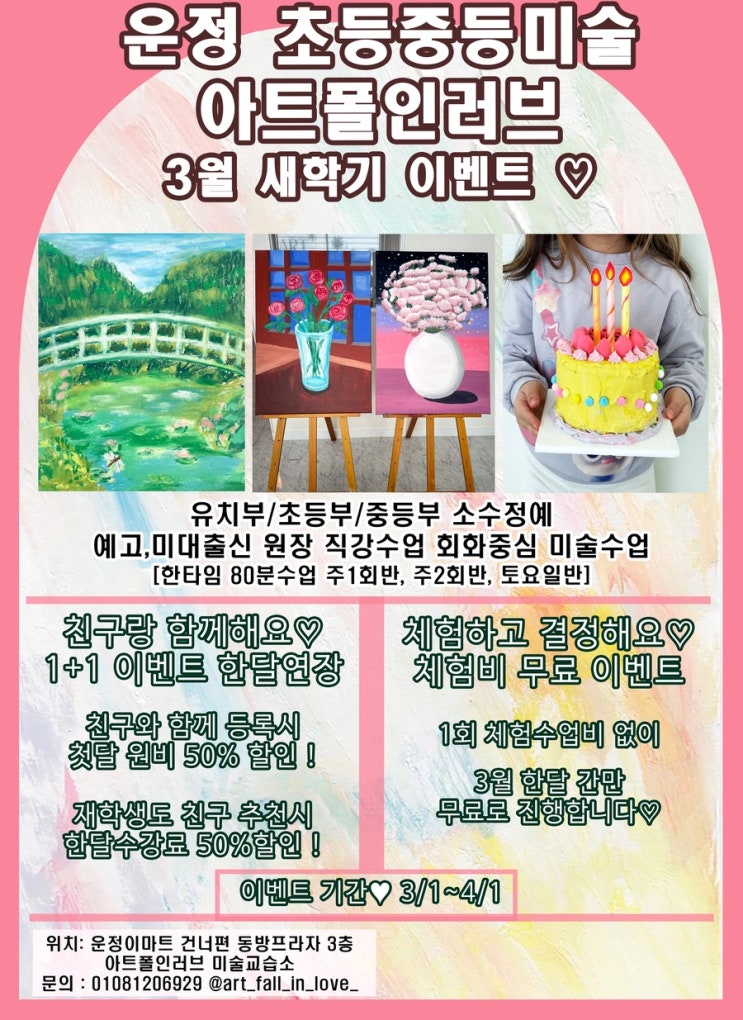 운정 미술학원 아트폴인러브 3월 새학기 이벤트