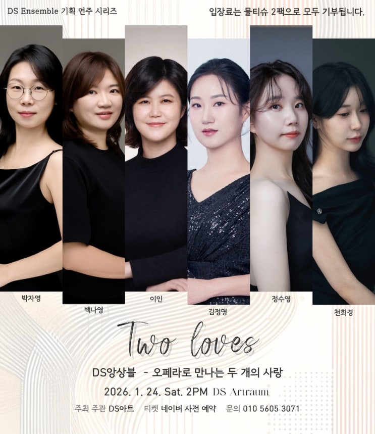 [#DS앙상블] Two Loves_오페라로 만나는 두 개의 사랑 DS 아트라움에서 주최하는 앙상블 연주에 참여하게 됐습니다. 오랜기간 동안 ‘선생님’으로 지내다 ‘연주자’로 한동안 지내보니 학생들을 더욱 더 이해할 수 있게 됐습니다. 연주로 에너지 충전하여 학생들께 돌려드리겠습니다. [프로그램] <img src="https://blogthumb.pstatic.net/MjAyNjAxMjdfMjc1/MDAxNzY5NDg0MzM2NTQy.mPHnwa85GRPpaEqfASQIOJERdsITyD0pZDmfTDLnMl0g.dGLf6YUF5M-fy34_N3RrPRCRys6KMN5llvPsgEvhmDAg.JPEG/IMG%A3%DF4646.JPG?type=s3" />