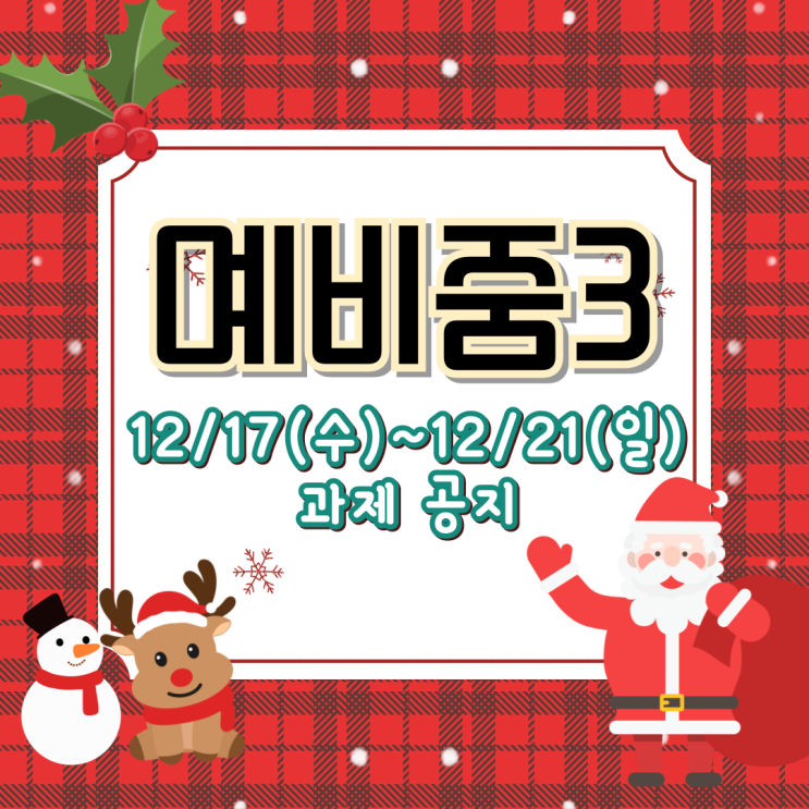 예비중3 12/17(수)~12/21(일) 과제 공지