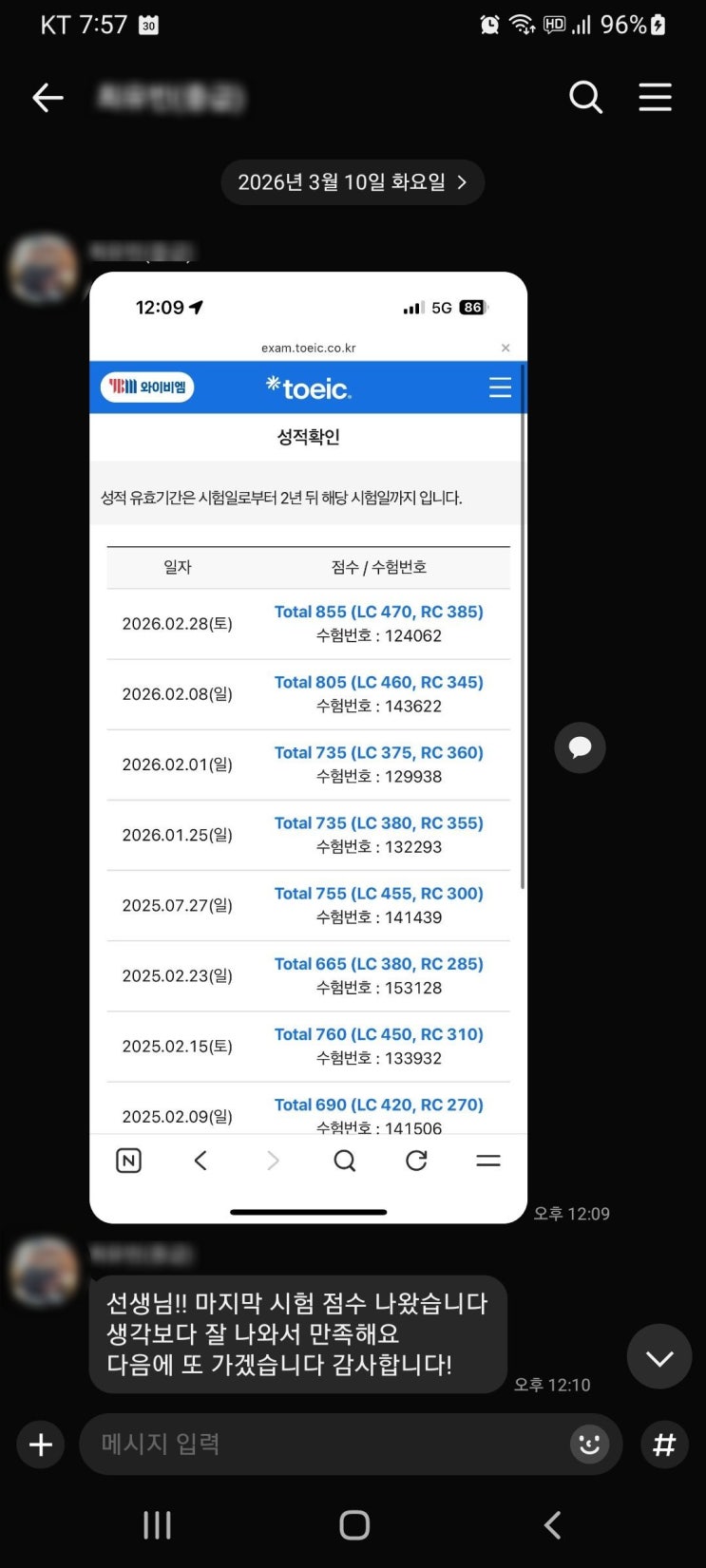 [울산대 토익학원 앤토익] 간호학과 토익 수강생 855점 달성 후기!