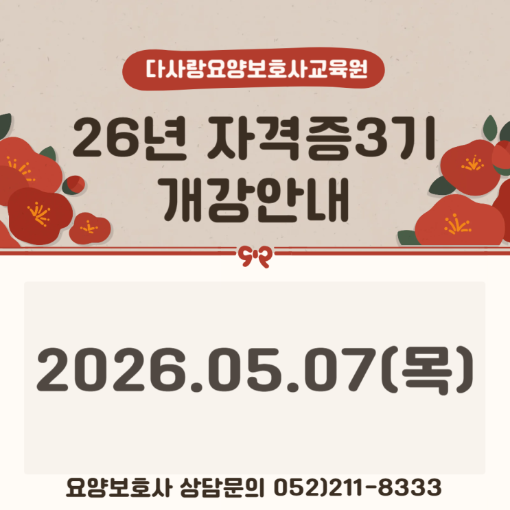★ 다사랑요양보호사교육원 2026년 자격증3기 개강일정 안내