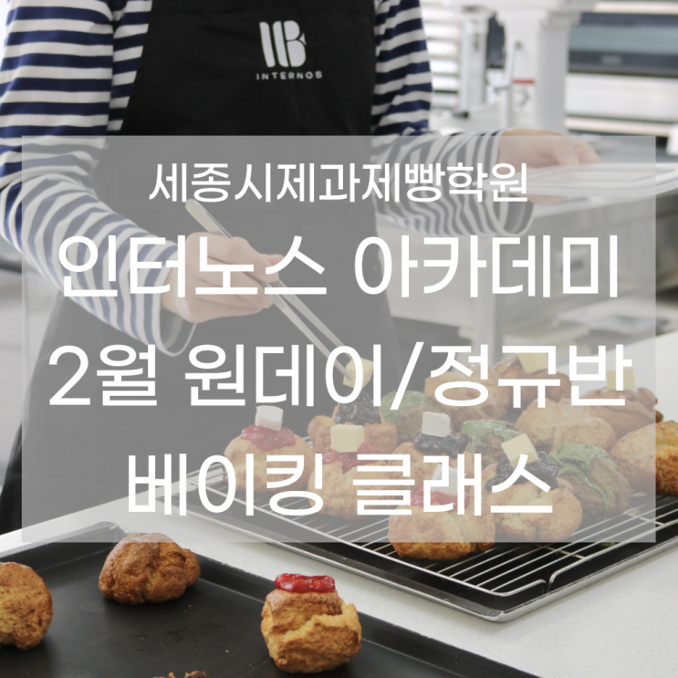 세종시제과제빵학원 "인터노스베이킹아카데미"는 디저트 전문 카페와 베이킹 스튜디오, 샌드쿠키 전문 매장을 직접 운영하며 부딪히고 경험한 노하우를 바탕으로 모든 수업이 진행됩니다. *카페/베이커리 업장 창업 예정인 분들은 실제 매장에서 필요한 전반적인 부분들까지 배워 갈 수 있으며, -대량 생산법 -제품 보관법 -판매 및 매장 운영법 *취미, 진학, 취업을 목표로 하는 분들은 베이킹을 더 전문적으로 배워 갈 수 있습니다. *전 과정 수강생님 직접 실습으로 맞춤형 피드백을 받으며 수업이 진행되며, 수업 후엔 지속적인 피드백을 받을 수 있습니다. *수업에 사용 된 베이킹 재료, 베이킹 도구, 포장 용기 등 모든 리스트와....... <img src="https://blogthumb.pstatic.net/MjAyNjAyMDZfMTU2/MDAxNzcwMzQ1MTQyODg5.ZgtXLZiT1JYcbcH7Kdg4LMIdzb9LSz_7iup8EDwXkVwg.YiWjXoOqsTbX3_6RVYN6eVp-m6pX-wVxB5h1Feqgy1Ug.PNG/2%BF%F9%BF%F8%B5%A5%C0%CC%C1%A4%B1%D4%B9%DD.png?type=s3" />