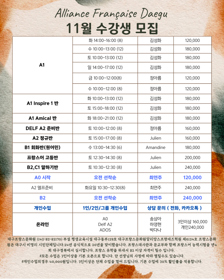 이번 시간중 특이 사항은 델프 준비 A2가 지금은 개인수업으로 1명 진행중입니다.참고하세요 토요일 오전 A2 중간반 학생을 찾습니다. 현재 진행 중이고 한명이 더 꼭 필요 합니다. <img src="https://blogthumb.pstatic.net/MjAyNTExMDdfMTQ3/MDAxNzYyNTA1NjAyMDgy.RecX9MsMNXpp69sJ4qIrX3WsL12D82zNHGgfaztun1Ig.NYkBUwSrEG3obdF4YSIdvqKPuOS1zIQJY4kHO4uPbq0g.PNG/11%BF%F9%BD%C3%B0%A3.png?type=s3" />