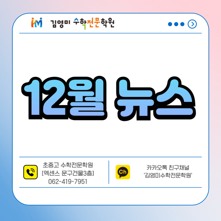 광주광역시 북구 매곡동 일곡동 김영미수학학원의 12월 일정 및 이벤트 안내