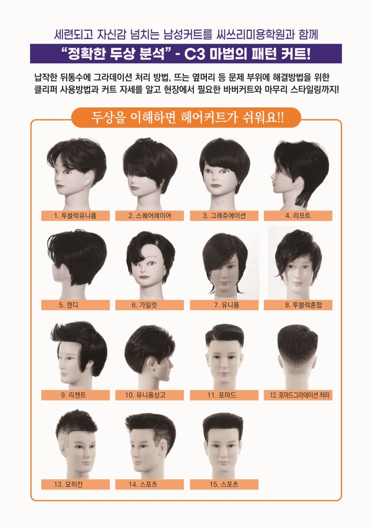 남성커트를 이렇게 하면 잘 할 수 있어요. 씨쓰리미용학원 ✂️
