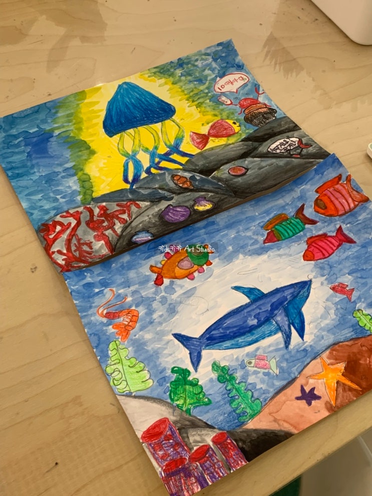 바다 속 풍경 그리기, 키즈키키 미술 교습소 / 수완지구 아동미술, 초등미술 , 유치부미술