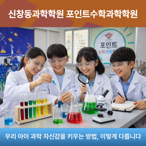 신창동과학학원 포인트수학과학학원 우리 아이 과학 자신감을 키우는 방법 이렇게 다릅니다 광주 광산구 신창동에 오시면 과학과 수학을 함께 책임지는 신창동과학학원 포인트수학과학학원이 있습니다. 포인트수학과학학원은 성적보다 먼저 아이의 자신감을 키우는 학원입니다. 문제를 풀기 전에 고개부터 숙이던 아이가 “선생님, 이거 제가 설명해 볼게요”라고 말할 수 있도록 학습의 방향부터 다르게 잡고 있습니다. 과학이 어렵다고 느끼는 아이들, 외워도 남지 않는다고 말하는 아이들, 시험이 다가올수록 위축되는 아이들에게 포인트수학과학학원은 어떤 방식으로 과학 자신감을 만들어 줄까요? 이해되지 않는 개념은 절대 그냥 넘기지 않....... <img src="https://blogthumb.pstatic.net/MjAyNjAxMjdfMjA3/MDAxNzY5NTE0Njk0NDU3.Ko9b-v7s28ItH5BTFbuo6R0Jie-j_DxF50snTxNdNPog.9S9QvqvnovvxIJgAq1cl9AZCczPDOKjXCUKXM-QbUdMg.PNG/%C1%A6%B8%F1%C0%BB_%C0%D4%B7%C2%C7%D8%C1%D6%BC%BC%BF%E4._%286%29.png?type=s3" />