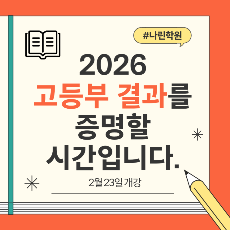안녕하세요! [나린학원] 입니다! 새학년의 새학기가 얼마 남지 않았는데요! 나린학원에도 곧 새학기 개강이 찾아온답니다. 2월 23일 개강 새로운 시작을 앞둔 만큼 궁금한 점도 많을 텐데요. 나린학원에서 고등부 공부의 모든 것을 알려드릴 예정이니 꼭 끝까지 필독 부탁드립니다! 지금부터 고등학교 공부습관이 얼마나 중요한지 설명해드리겠습니다! [2026 고등부, 결과를 증명할 시간입니다] 고등학교 공부, 왜 달라져야 할까요? 고등학교 공부는 더 이상 '열심히 하면 되는 공부'가 아닙니다. 결과로 증명해야 하는 시기 입니다. 과목 수는 늘고, 학습량과 난이도는 급격히 높아지며, 모든 평가는 내신이라는 결과로 남는데요. -&g....... <img src="https://blogthumb.pstatic.net/MjAyNjAyMDJfMjQy/MDAxNzcwMDI4MjI3NTA0.F-ygufbPZ2UJFZvQedrCdd8AwMhMd57E62OfoIWhmeog.IGMp0sc8khB2rfM390DiCmZwCEvhOwAdAMQd71Ubinkg.PNG/%B0%ED%B5%EE%BA%CE_%C7%A5%C1%F6..png?type=s3" />