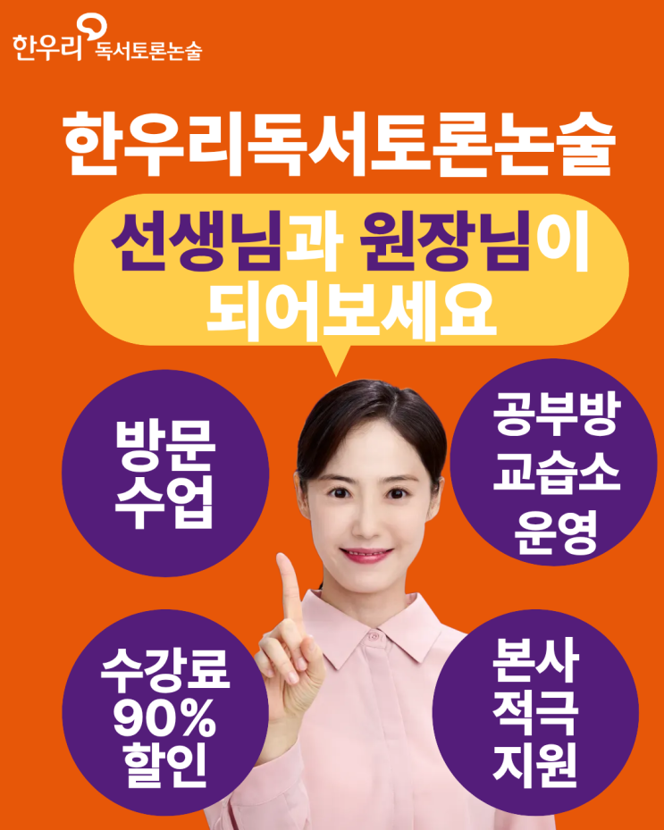 공부방 교습소 창업 고민이라면 지금 시작하세요. 한우리 교사반 90% 할인 진행 중! / 대전 중구 한우리독서토론논술