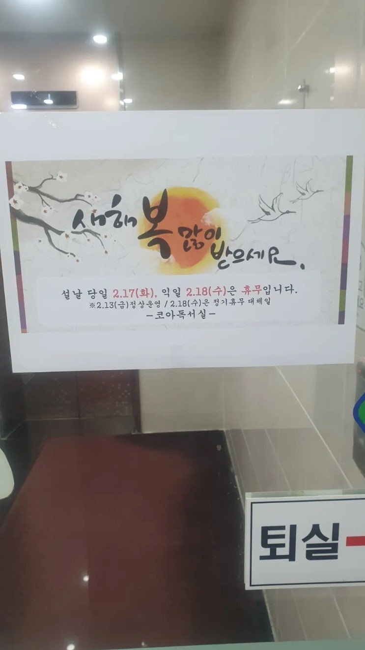 안녕하세요. 청담어학원입니다. 2026년 설날을 맞이하여 휴강 일정 안내드립니다! 울산 청담 휴강일 2026년 02월 16일(월) ~ 2026년 02월 18일(수) 위 스케줄 표를 참고 부탁드립니다. < 보강 관련 안내 > 02월 18일 수요일 클래스 (월수_Giga/월수_Tera/월수_Birdie) 학생들은 2/21(토) V1 (원서)수업 보강이 있을 예정입니다. 차량은 운행되지 않아 개별등하원으로 이루어집니다. "2026년 병오년(丙午年) 행복하고 즐거운 해가 되기를 기원합니다. 새해 복 많이 받으세요! " 설 휴강 관련하여 궁금하신 사항은 원으로 연락 부탁드립니다. 감사합니다. ☎ 052-266-9407 <img src="https://blogthumb.pstatic.net/MjAyNjAyMDZfMjU0/MDAxNzcwMzU2NzgzNTI4.gX92-kndmwr2bfsAs6ym4vNd71DP_18CPSK6p8ukUUog.k0WK8FM0st09Q72P7AhYEqVLuyIko7xlj_eQjBd4clEg.PNG/%BC%F6%C1%A41.png?type=s3" />