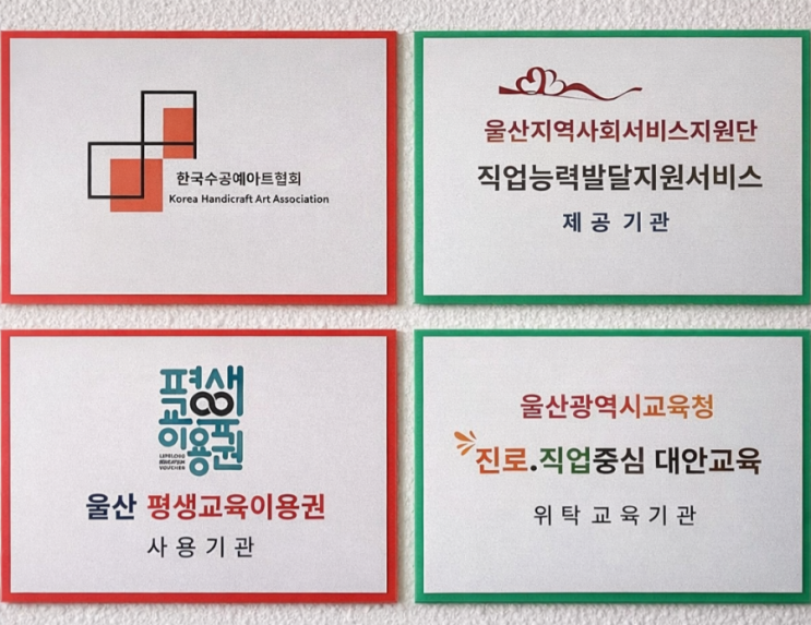 2026년, 벌써 4월입니다 2026년 시작과 함께 쉼없이 달려오다 보니 어느덧 4월이 되었습니다. 그동안 한 걸음씩 쌓아온 노력의 결과로, 한국수공예아트협회 설립과 함께 2026년 다양한 공공기관에 선정되는 성과를 이루었습니다. ✔️울산지역사회서비스지원단 직업능력발달지원서비스 제공기관 ✔ 평생교육이용권 사용기관 ✔ 울산광역시교육청 진로·직업중심 대안교육 위탁교육기관 이 모든 결과는 단순한 시작이 아닌, 꾸준한 준비와 노력의 결실입니다 누구나 배우고, 성장하고, 자신의 가능성을 펼칠 수 있는 공간. 그 중심에 울산수공예학원이 함께하겠습니다. 앞으로도 멈추지 않는 도전과 발전으로, 회원 여러분과 함께 더 높은 가....... <img src="https://blogthumb.pstatic.net/MjAyNjA0MDRfMjkw/MDAxNzc1MzA2Mjg0ODc4.Mw9NlAKrzPeD7tp_t29p0J8lb6Kexk8M-ayX4o29EAgg.YpsjeWTjVvVEiy3p_545d9Dls050b3-s5dv-I4WZVPgg.PNG/900%A3%DFfile%A3%DF00000000917c720bac90b21edc0278b0.png?type=s3" />