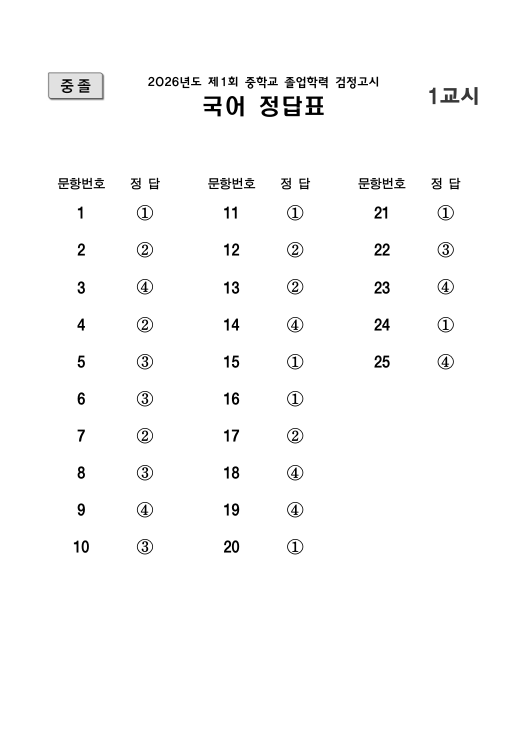 2026년 제1회 중졸 확정답안