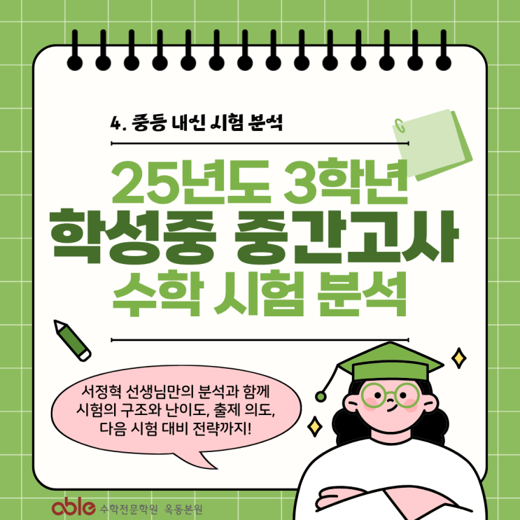 [울산 옥동 수학학원 에이블 중등부] 4. 2025년 학성중학교 3학년 1학기 중간고사 분석