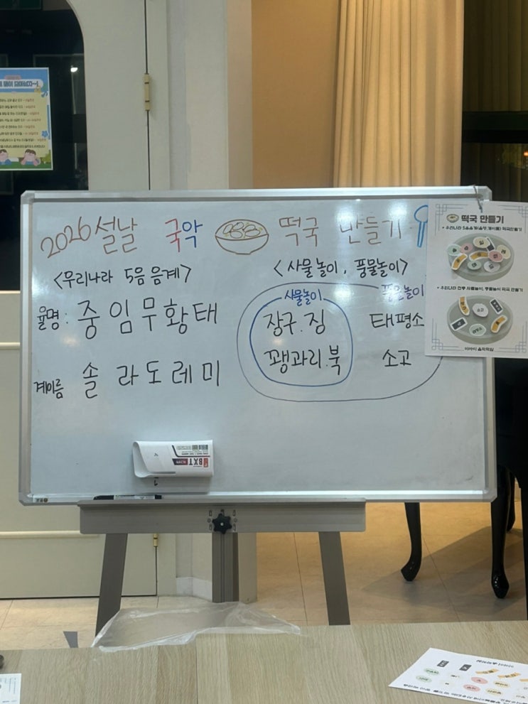 #이아이음악학원 #금요특강 #음악학원 #초등부 #유치부 #피아노학원 #울산동구음악학원 안녕하세요 ! 이아이음악학원입니다 이번주는 다가오는 설날을 기다리며 특별한 수업을 준비했습니다 ! 오늘의 수업은 국악과 함께하는 떡국만들기 ✨ 설날을 맞아 우리나라 전통음악인 국악을 알아보며 ‘5음음계’와 ‘풍물놀이, 사물놀이’에 대해 자세히 배워보는 시간을 가졌습니다 집중하는 뒷모습 너무 귀여워요 ✨ 정답을 직접 찾아보는 과정을 통해 오늘 배운 내용들을 스스로 복습하고 더 깊이 이해할 수 있는 시간이 되었어요! 정답을 모두 찾은 후에는 직접 만들어보는 떡국 시간! ✨ 우리나라 5음음계를 표현한 떡....... <img src="https://blogthumb.pstatic.net/MjAyNjAyMTNfMjI1/MDAxNzcwOTc1MTQ4Mzk3.1eA9zqJnDPuVrkGwoEmX05X09QlJlhBLk6Gud-vGtA4g.bn5_45ytEz0ePyATeRkTpt7_qamVP094kLi6CbgQjTUg.JPEG/IMG%A3%DF0272.jpg?type=s3" />
