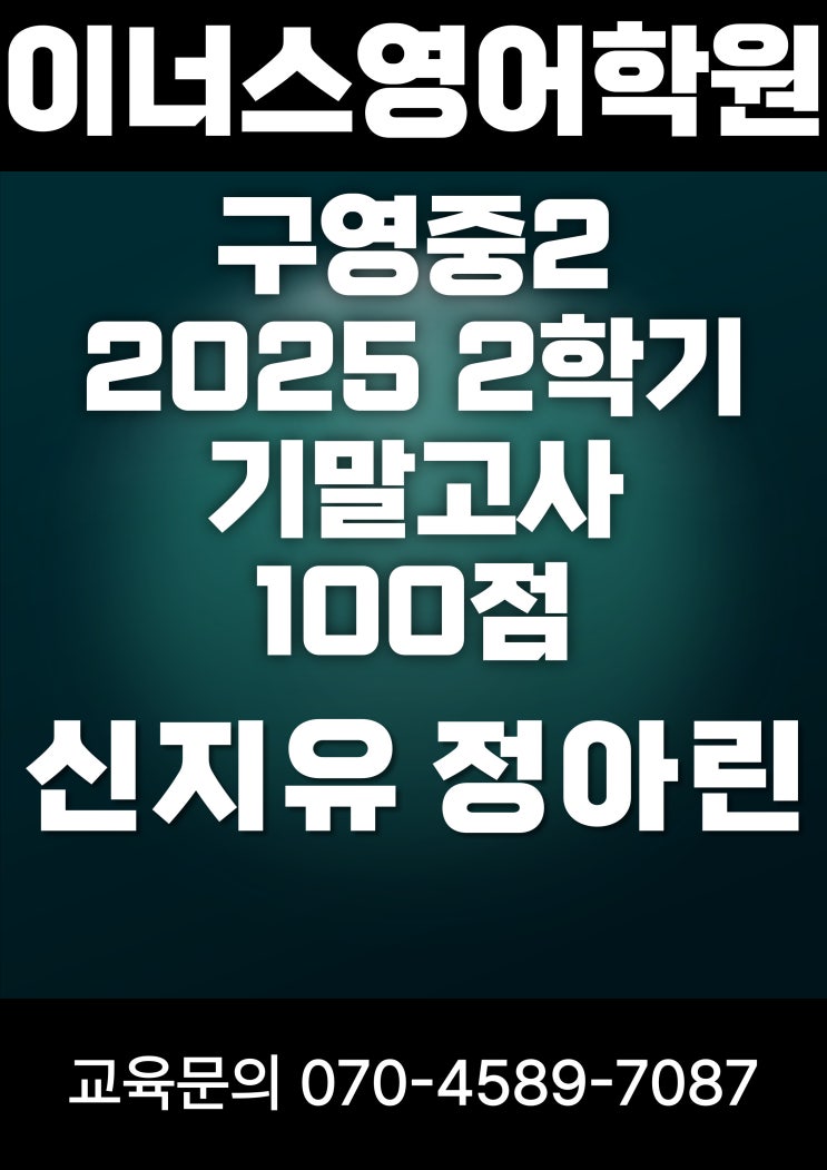 구영중 영어 시험이 난이도를 조금씩 높여가고 있습니다. 이번 2학년 시험도 결코 만만하지는 않았습니다. 함정도 많았고, 난해한 문제들도 꽤 있었습니다. 아마 정확히 중등 문법이 정리되지 않았거나, 본질적인 이해가 되지 않은 학생들은 좋은 성적을 받기 어려웠을 것입니다. 100점 받은 학생들을 거의 찾아보기 힘들 정도입니다. 중학교 영어 내신대비를 단기간 열심히 해서가 아니라, 영어에 대한 본질적 접근을 통해, 내신"도" 잘 하게 되어야 합니다. 이번 시험 성적이 좋지 않다면, "왜 내신 성적이 잘 안나올까"라는 질문보다 더 근본적인 질문 "영어가 제대로 되고 있는지"를 돌아봐야 할 때입니다. <img src="https://blogthumb.pstatic.net/MjAyNTEyMTlfMTA3/MDAxNzY2MTQ5MTkzOTc1.3IIfSdHxYKOoRSIE3Xii-CQs1Gt-MyW6KOT7B5Hfz18g.oycg5Agibhb0BIOgtyKuFy5Wz7VrQYMQKCGC8skZXfcg.JPEG/001.jpg?type=s3" />