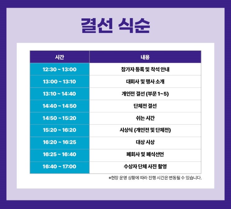 안녕하세요, 구영리 영어학원 엘리프 어학원 구영캠퍼스입니다 제1회 엘리프 스피킹 페스티벌 본선이 성공적으로 마무리되고 이제 대망의 결선 및 시상식만을 남겨두고 있습니다! 결선에 초대된 학생들과 학부모님들께 진심으로 축하의 말씀을 전하며 행사 준비에 참고하실 수 있도록 결선 일정 및 안내 사항을 정리해 드립니다. 결선 및 시상식 일정 일시: 2026년 2월 21일(토) 낮 12시 30분 장소: 비상교육 Ground V (과천대로2길 54, 그라운드 브이) 결선 식순 12:30 ~ 13:00 : 참가자 등록 및 착석 안내 13:00 ~ 13:10 : 대회사 및 행사 소개 13:10 ~ 14:40 : 개인전 결선 (부문 1~5) 14:40 ~ 14:50 : 단체전 결선 14:50 ~ 15....... <img src="https://blogthumb.pstatic.net/MjAyNjAyMDZfMjU2/MDAxNzcwMzU5NjU3Mjc3.qmxRoWY0QvAN4k7M5CstgGzk6slLrHN7Fk19H1sG5lUg.eo7yO9B9bhJJi8PQ6VAVlKbKBOjHzAfLLoPJ4qs_QxEg.JPEG/2.jpg?type=s3" />