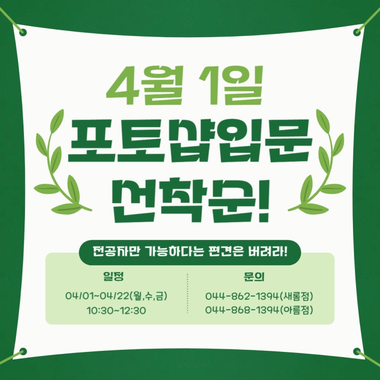안녕하세요~ 세종컴퓨터학원입니다. 드디어 기다리고 기다리던 포토샵 내일(1일) 개강합니다^^ 비전공자도 키보드와 마우스 사용만 가능하다면 참여할 수 있는 입문과정입니다. 그렇다고 해서 수업에 퀄리티가 떨어질 거라는 생각은 노노! 실무 경력을 겸비한 전문 그래픽 강사진으로부터 노하우를 전수받아 감각적인 디자인을 완성할 수 있습니다~ 포토샵은 디자인 분야에서 필수로 사용해야 되는 기본 프로그램입니다. 이미지 색감 보정, 합성, 편집 기능을 배우며 경쟁력을 100% 끓어올릴 수 있습니다. 스마트폰으로 찍은 평범한 사진도 몇 번의 터치만으로 원하는 분위기를 연출할 수 있습니다! 외주를 맡기지 않아도 간단한 유튜브 썸네일, ....... <img src="https://blogthumb.pstatic.net/MjAyNjAzMzBfMjg5/MDAxNzc0ODU0OTMzNDg2.EhJ5edgSEpHDM_j0Z6-cCWe7xzN42hduYn-tIRVPlZ8g.OBh2k4wWIpom42mEHt2JA5f5iHdFBjVPefqC0gj4I98g.JPEG/%C1%A6%B8%F1%C0%BB_%C0%D4%B7%C2%C7%D8%C1%D6%BC%BC%BF%E4_-001_%2845%29.jpg?type=s3" />