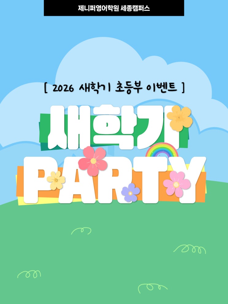 안녕하세요! 제니퍼영어학원 세종캠퍼스입니다 초등부 새학기 특별 이벤트로 즐거운 파티를 열었습니다~ 수업은 정상적으로 진행되었고~ 수업이 끝난 후 스낵존에서 선생님들이 정성스럽게 준비한 떡볶이/어묵/주스/과자 등을 받아 맛있게 먹으면서 영화를 시청하는 시간을 가졌답니다♡ 반 친구들과 함께 포토존에서 사진도 찍으며 아이들이 정말 즐겁게 참여해 주었습니다! 영어라는 과목은 꾸준함과 끈기가 꼭 필요한데, 초등학생들에게는 즐겁게 배우는 경험이 매우 중요합니다. 저희 학원에서는 아이들이 영어에 대한 흥미를 잃지 않도록! 영어를 자연스럽게 접하고 자신감을 가질 수 있도록! 매월 다양한 이벤트와 활동을 진행하고 있....... <img src="https://blogthumb.pstatic.net/MjAyNjAzMzFfMjM5/MDAxNzc0OTU5NjExNjk5.K13HrjzUTVJqzfLgTNDDlgFsys3Si_N7mwewseUaZ0wg.bi5LNiFSe-BpvLLxbbXfuBIMdxaDp9ID3bV2NHkw0uwg.JPEG/2604-1-%BC%BC%C1%BE_%B4%EB%C1%F6_1.jpg?type=s3" />