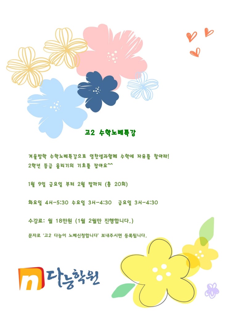 답답함을 겨울방학동안 시원하게 해결해 주겠다!!! 수학노베 다능이들 모여라 실력자로 만들어주마!!! 꾸준함은 결국 합격이 된다. 초등부터 고3까지 책임지는 곳! 다능학원 <img src="https://blogthumb.pstatic.net/MjAyNTEyMjZfMTUw/MDAxNzY2NzM2MTUxNDYx.G0d4YIFvxPYoemQ_OvNqIPAZsWVzSihThXZjePn62HMg.rjaLrX4wwNUQQrT_bijpSNXKUDl3LkhgU4TMllWJOSsg.JPEG/%B0%ED2_%BC%F6%C7%D0%B3%EB%BA%A3%B0%DC%BF%EF%B9%E6%C7%D0%C6%AF%B0%AD.jpg?type=s3" />