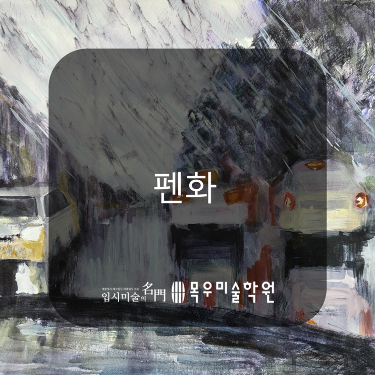 안녕하세요! 목우미술학원 교동캠퍼스 윤수쌤입니다. 오늘은 고1반에서 진행하는 펜화 수업을 소개해 드릴게요! 평소에는 연필을 주로 사용해 그림을 그렸다면, 펜화 수업에서는 보다 다양한 재료들을 통해 많은 연출을 해낼 수 있답니다. 그럼 바로 보여드릴게요~!! 펜화 과정작 먼저 원하는 사진을 고른 뒤에 연필로 스케치를 떠줍니다! 펜으로 그림을 그리기 전에 연필로 스케치를 해주면 전체적인 형태와 구도, 비례를 부담 없이 그릴 수 있어요. 스케치 단계에서 형태를 꼼꼼하게 잡아두는 것이 안정적으로 펜화를 진행할 수 있는 밑받침이 되겠죠! 스케치를 다 하고 나면 그 위에 펜으로 선을 정리해주며 그려나갑니다! 전체 형태를 잡아둔....... <img src="https://blogthumb.pstatic.net/MjAyNjA0MDFfMTcy/MDAxNzc1MDIxNzQxNjU0.x9t3dyRlqWSWYCBaarRlMdApQTa-UkSBzxPdxSWz2aUg.RO-drrFF9qVhFPo14448JN9sMgv3TKgCcsHtcHTl-csg.PNG/%C1%A6%B8%F1%C0%BB-%C0%D4%B7%C2%C7%D8%C1%D6%BC%BC%BF%E4_-001_%281%29.png?type=s3" />
