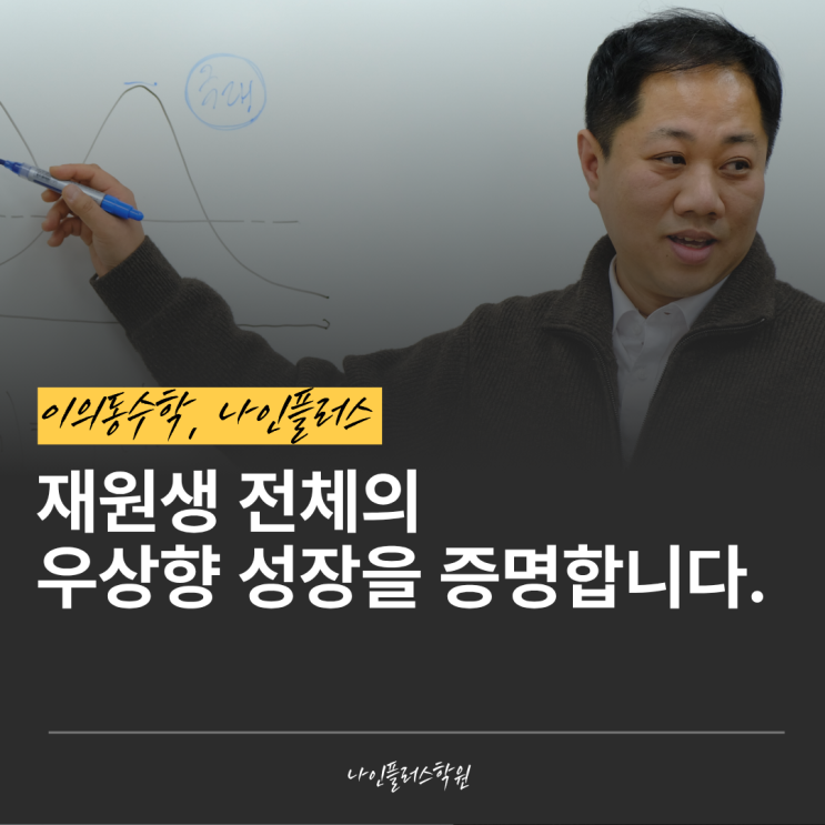 안녕하세요. 이의동수학학원 나인플러스입니다. 학원의 진짜 실력은 소수 상위권의 화려한 결과보다, 그 뒤에 가려진 '재원생 전체의 우상향 성장'에서 드러난다고 확신합니다. 전교 1등 한 명을 만드는 기술보다 더 가치 있는 일은, 모든 아이가 자신의 한계를 넘어 함께 성취감을 맛보는 정밀한 시스템을 구축하는 것이니까요. 다가오는 중간고사, 나인플러스 아이들이 목표로 하는 평균 93.5점은 결코 우연이 아닙니다. 이의동에서 재등록률 90%를 유지하는 비결이자, 하위권부터 상위권까지 각기 다른 엔진으로 가동되는 나인플러스만의 '등급별 정밀 케어 시스템'을 가감 없이 공개하겠습니다. [하위권] "포기하려....... <img src="https://blogthumb.pstatic.net/MjAyNjAzMzBfMTA2/MDAxNzc0ODMzMzg3NzEw.D5JwExXECRYoW8bxliTMOg4TXryAhKb53p_n7AcCQ3cg.hD0D-klXHYsF5xefM5TvX19niYdDoFr1pzvbCyfIFGAg.PNG/1.png?type=s3" />