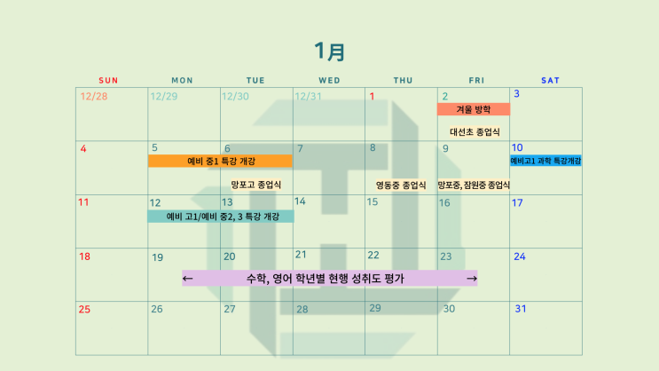 [영통/망포 하이포스학원] 1월 스케줄/시간표