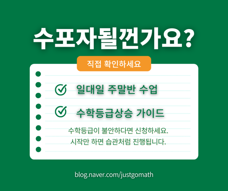 "엄마, 수학 포기할래요." 이 말을 들은 순간, 학부모님의 가슴은 철렁 내려앉습니다. "우리 애가 수포자가 되면 어쩌지?" 학부모님, 이런 고민 하고 계시죠? ✅ 평일엔 학교 수업으로 바쁜데, 수학은 언제 잡지? ✅ 학원은 다니는데 성적은 왜 안 오를까? ✅ 인강은 듣는데 문제만 풀면 손도 못 대... ✅ 고등학교 가면 더 어려워진다는데 지금도 벅찬데? 이대로 가면 우리 아이, 정말 수포자 됩니다. 중학교 수학, 놓치면 고등학교 3년이 무너집니다 중학교 때 수학 구멍 뚫리면: 고1 첫 시험에서 충격 자신감 무너짐 수학 포기 → 이과 포기 → 진로 제한 지금 잡지 않으면 평생 후회합니다. ✅ 해결책: 주말 9....... <img src="https://blogthumb.pstatic.net/MjAyNjAyMDNfMTQ3/MDAxNzcwMTAxMDI4NjE5.qwLkwfolzkNSLuBqIcccEtnb7Y4r2av5asWJccntdRQg.7UZew_tJpawAForAfl5HoHVqFNV-SuWHyjGGj7_Ccdog.PNG/%C6%C4%B6%FB_%B4%DC%BC%F8%C7%D1_%B7%B9%C0%CC%BE%C6%BF%F4_%BE%C8%B3%BB%BB%E7%C7%D7_%C6%E4%C0%CC%BD%BA%BA%CF_%B0%D4%BD%C3%B9%B0.png?type=s3" />