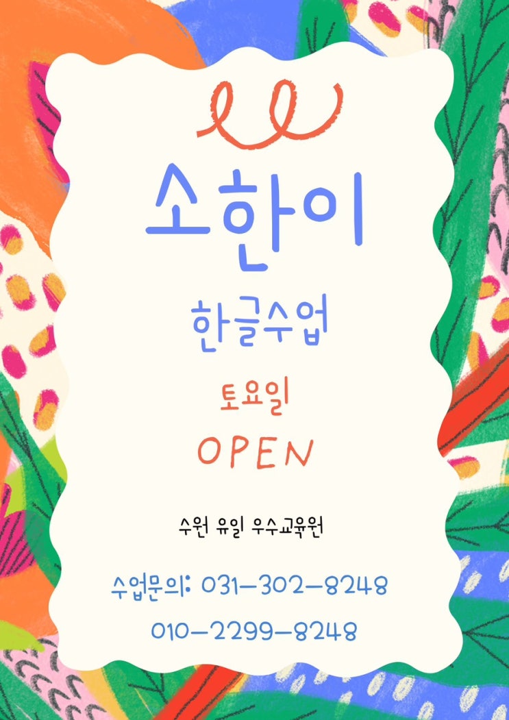 [노리가베수학학원] 소한이 한글 토요일반 개설 & 수원 유일 우수교육원 선정 안내
