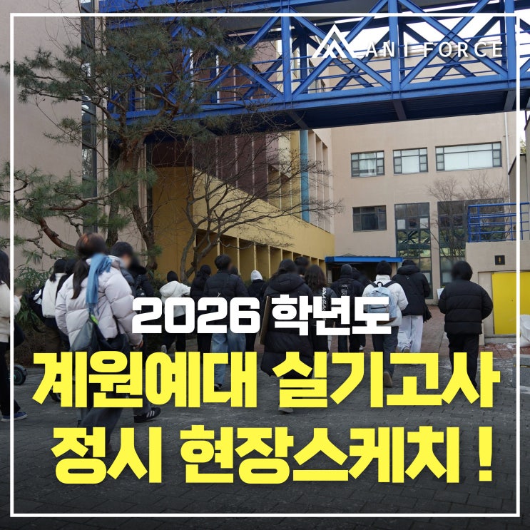 항상 즐겁게 그림 그릴 수 있도록 지도하는 수원애니포스가 되겠습니다. 안녕하세요, 수원애니포스만화학원입니다. 2026학년도 정시 실기고사가 어느덧 모두 마무리되고, 현재는 추가 합격자 발표가 다가오는 시기입니다. 이번 글에서는 2026학년도 계원예대 정시 실기고사를 기준으로 시험 일정의 특징과 경쟁률, 그리고 실기고사 주제 흐름을 중심으로 핵심 내용을 정리해보려 합니다. 이번 계원예술대학교 정시 실기를 돌아보는 과정이 향후 2027학년도 대학 입시를 준비하실 때 유용한 참고자료가 되길 바랍니다. 계원예술대학교, 어떤 학교인가요? 계원예술대학교는 실무 중심 교육과 전공 특화 커리큘럼으로 알려진 디자인 계열 중심의 2·3....... <img src="https://blogthumb.pstatic.net/MjAyNjAyMTBfOTQg/MDAxNzcwNzI2MjI1NTk3.BhWOhFdP179BrX2ApeJRnAFQo1bgYsr9pFcnPHv7HZIg.JU9Hmawv-q89p-Ebp1vWGUJwrxT4RODLMcwsKQgHY1kg.JPEG/%BC%F6%BF%F8-%C7%D0%BF%F8%C0%CF%BB%F3%C6%ED_%BA%B9%BB%E7%BA%BB-003_%283%29.jpg?type=s3" />