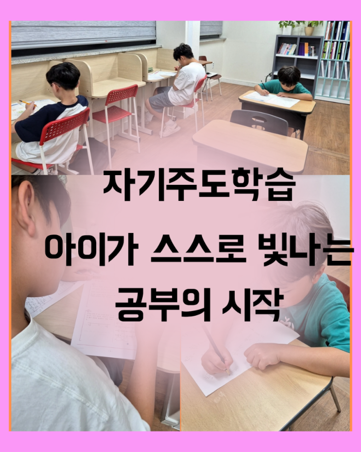 촉촉하게 비가 내리는 날입니다. 오늘도 우리 자녀들의 교육에 열정을 가지신 학부모님께 도움이 되는 자기주도학습이 왜 필요한지 글을 작성해보려해요 아이 공부를 바라보는 부모님의 마음은 언제나 비슷해요 “스스로 공부하면 얼마나 좋을까”, “매번 옆에서 챙기지 않아도 알아서 하면 얼마나 편할까” 하는 바람 말이죠. 하지만 현실은 숙제 하나에도 여러 번 잔소리를 해야 하고, 성적이 오르지 않아 불안해지는 경우가 많습니다. 사실 공부에서 가장 중요한 힘은 스스로 배우려는 마음, 즉 자기주도학습에서 나옵니다. 성적을 올리는 것은 물론이고, 아이가 자신감 있게 학교생활을 이어가는 가장 든든한 기반이 됩니다. 특히 수학은 개....... <img src="https://blogthumb.pstatic.net/MjAyNTA5MjRfMTQx/MDAxNzU4NjkwMjQ1Mzcy.4VED63CCxffySsf5whWciboy6sA2aiIImbAAsJPtu8Eg.aXloP_fqC78x1bEtrfu2pim5R_VDjCOVtvPwAftHFP0g.PNG/900%A3%DF%C0%DA%B1%E2%C1%D6%B5%B5%C7%D0%BD%C0_%BE%C6%C0%CC%B0%A1_%BD%BA%BD%BA%B7%CE_%BA%FB%B3%AA%B4%C2_%B0%F8%BA%CE%C0%C7_%BD%C3%C0%DB%A3%DF20250924%A3%DF140328%A3%DF0000.png?type=s3" />