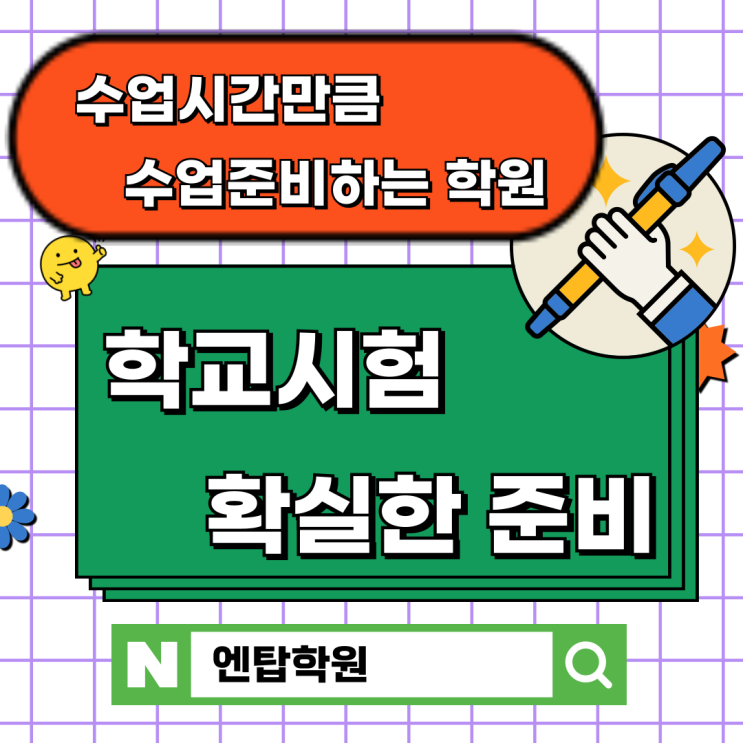 효자중 천보중 신곡중 금오중 중학교 학교 시험 지금부터는 더 제대로! 더 정확하게! 배우고 공부해요. 제대로 된 수업 아이마다 이해도가 다르기 때문에 수업 방식도 달라야합니다. 우리 엔탑학원에서는 아이 맞춤수업으로 제대로 시작하고 제대로 배울 수 있도록 준비하고 있습니다. 1:1 개별설명을 통해 기초가 부족한 아이도 포기하지 않고 기초부터 다시 공부할 수 있도록 준비해주고 점점 발전하면서는 유형, 응용, 심화까지 단계적으로 성장할 수 있도록 지도하고 있답니다. 학교시험은 '학교 기준'으로 준비해야 합니다 학교시험을 잘 보기 위해서는 학교교과서, 출판사별 유형문제, 실제 학교시험문제 분석을 통해 학교별 출....... <img src="https://blogthumb.pstatic.net/MjAyNTEyMTZfMTAy/MDAxNzY1ODQ2NzU5NTU2.qGYLJauaPjdrim9UlhU2nSRE4YZsGwIof6czx-m5s7Yg.cSGOZvwhT4XCF0nrcCzuqpYl2hcKplJWJfdFOQQ6m_og.PNG/001.png?type=s3" />