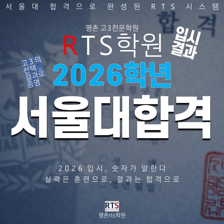 평촌 고3전문학원 RTS학원 2026학년도 입시결과 서울대 합격