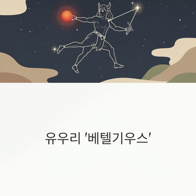 유우리의 대표곡 'ベテルギウス(베텔기우스)' 가사 해석과 곡 정보 감성 짙은 음색과 섬세한 감정선으로 주목받고 있는 일본의 싱어송라이터 유우리(優里). 그의 대표곡 중 하나인 ‘ベテルギウス(베텔기우스, Betelgeuse)’는 밤하늘의 별을 모티브로 한 아름다운 발라드로, 사랑과 상실, 그리움을 담담히 풀어낸 가사로 많은 이들에게 위로가 되고 있습니다. 이번 글에서는 ‘베텔기우스’의 가사 해석과 함께 곡의 배경, 유우리의 음악 세계까지 소개해드릴게요. ‘베텔기우스’는 어떤 곡일까? ‘베텔기우스’는 2021년 10월 발표된 곡으로, 일본 후지TV 드라마 ‘SUPER RICH’의 주제가로 쓰이면서 큰 인기를 끌었습니다. 제목은....... <img src="https://blogthumb.pstatic.net/MjAyNjAyMDRfMjQ1/MDAxNzcwMTkwOTY4MDM2.iXiM6_yeR8gPpJrUDnSwYC5H91Vzq0P1NteaY8wNEcwg.8nybzv_cIa5KTghgBUNjaLwZA9y6UsuBhLl3RcKOXTUg.PNG/1_.png?type=s3" />
