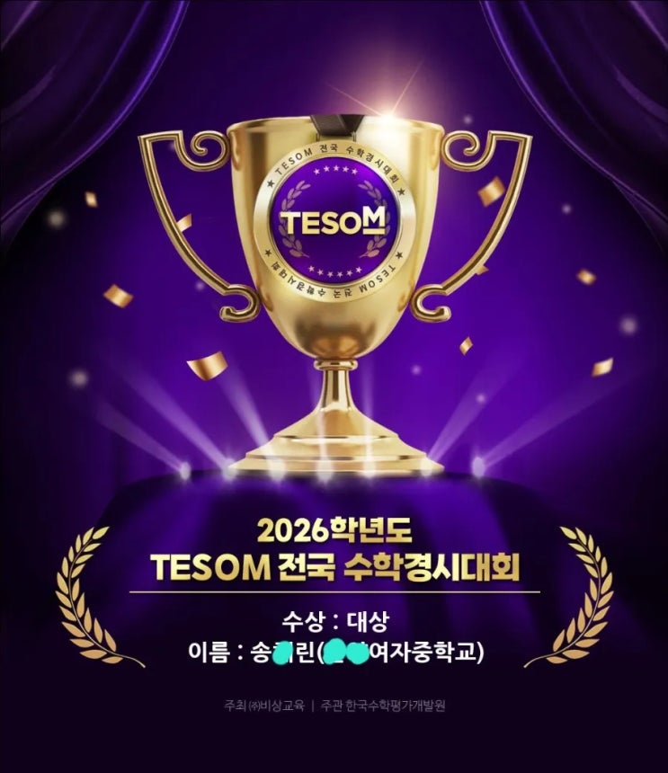 [TESOM전국수학경시대회 발표]중3부문 대상수상을 축하합니다