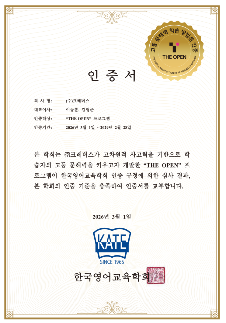 안녕하세요 청담어학원 평촌브랜치입니다! 요즘 THE OPEN 수업에 대해 많은 학부모님들께서 관심과 문의를 주고 계십니다 이미 많은 학생들이 수업에 참여하며 꾸준히 실력을 쌓아가고 있는데요 THE OPEN 수업은 중등 내신 대비부터 수능 1등급 완성까지 이어지는 체계적인 영어 학습 로드맵을 기반으로 운영됩니다 특히 ESL + EFL을 결합한 커리큘럼을 통해 단순한 시험 대비를 넘어 영어를 ‘이해하고 활용하는 힘’을 기르는 데 집중하고 있습니다 이 과정을 통해 학생들은 자연스럽게 고등 수준의 문해력까지 확장하게 됩니다 ✨ THE OPEN 수업의 학습 방법론은 고등 문해력 중심 교육 프로그램으로서 한국영어....... <img src="https://blogthumb.pstatic.net/MjAyNjA0MDFfMjAw/MDAxNzc1MDIzMTk1NDg5.kDWjhcX9nyiMYN5CZXAs6iocnI-DPZsEVWttdYpSrtUg.Q9UEKW9n8jUOE9XIMlcoyiUH_2V7CdfCSurgYuhipe4g.PNG/undefined-.png?type=s3" />