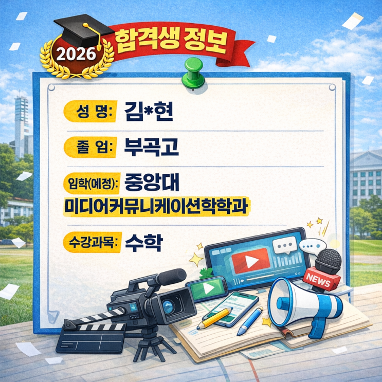 [안산 월피동 이강학원] 이강학원 중앙대 미디어커뮤니케이션과 합격수기