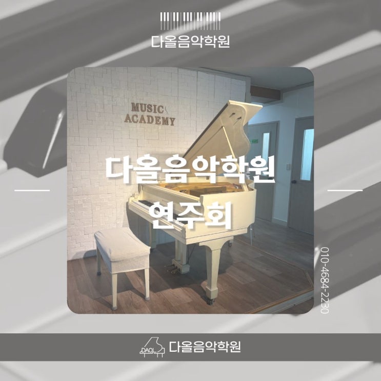 안녕하세요 다올음악학원 다올쌤입니다! 지난 2025년 12월 23일, 학부모님들을 모시고 다올음악학원 원내 연주회를 진행했었는데요-! 우리 다올이들이 그동안 열심히 준비한 무대를 따뜻한 박수 속에서 성황리에 마무리했답니다 이번 연주회는 2025년 2월 부터 처음 배운 친구, 5월에 시작한 친구, 그리고 11월에 막 배우기 시작한 친구들까지 기초 단계부터 중급 단계까지 다양한 아이들이 함께한 무대였어요 아주 화려하고 어려운 곡들은 아니었지만 각자의 자리에서, 자신의 단계안에서 최선을 다해 준비한 무대였기에 어떤 공연보다 값진 시간이였어요 사실 아이들에게 "내가 사랑하는 엄마, 아빠 앞에서 연주하기....... <img src="https://blogthumb.pstatic.net/MjAyNjAyMDVfMTg2/MDAxNzcwMjY5MzQ1NDkw.gFntyL_8-Yn4-UEyUd9RvMf5QrsxmBgNm68idFG47kwg.bEC_2-L5Hxpb_B6Sy-4j2jBqrqQ4c19pUBcxxFkCaqsg.JPEG/%BA%ED%B7%CE%B1%D7_%BD%E6%B3%D7%C0%CF_%284%29.jpg?type=s3" />