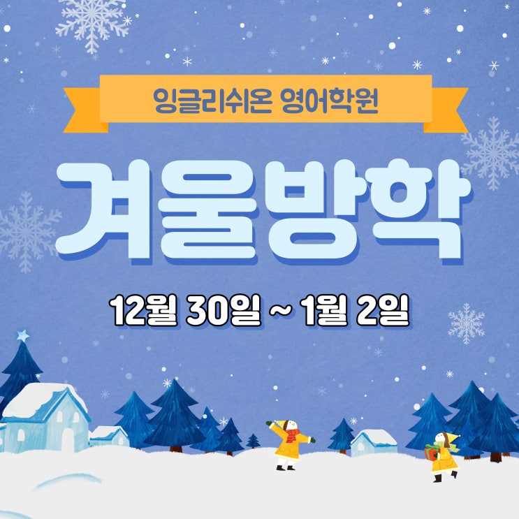 영어의 스위치를 켜다! 안산 고잔동 잉글리쉬온 영어학원 중고등부 원장 윌 & 성인영어 원장 줄리입니다. 25년 새해 영어 인사말 포스팅하면서 '새해 복 많이 받으세요' 했던게 엊그제 같은데 이제 곧 2026 병오년 새해입니다. 얼마 남지 않은 25년 잘 마무리하시면서 26년 붉은 말의 해에도 건강하시고 계획하신 모든 일들 잘 이루시길 바랍니다 잉글리쉬온 영어학원은 내일(30일/화)부터 1월 3일(토)까지 겨울방학으로 학원 운영을 하지 않습니다. 내신 대비로 주 3~4일씩 나와서 열심히 공부한 중고등학생들, 바쁜 연말임에도 결석하지 않고 열정적으로 수강한 성인 수강생들 모두 학원 겨울 방학 동안 푹 쉬시면서 재충전 잘 하....... <img src="https://blogthumb.pstatic.net/MjAyNTEyMjZfMjI5/MDAxNzY2NzMyNTAyNTc4.IRm-vfE9RYdnN95sDvDJANAuf-xw5-wlaf0AsuKW330g.0EIzs_wi5XUgxE832yCelRXmKzmKcVWma7LyJnngF9Ug.JPEG/1.jpg?type=s3" />