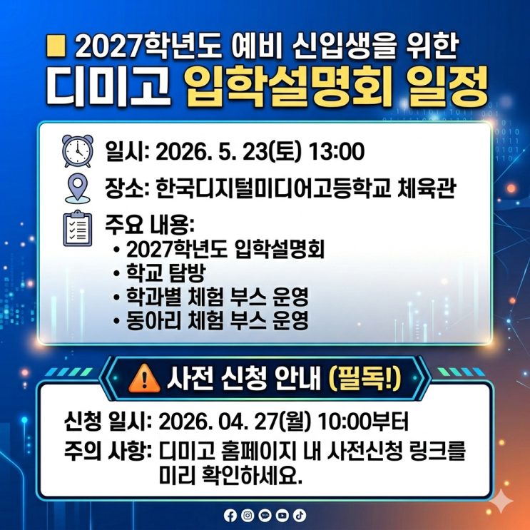 안녕하세요. 디미고 입시의 살아있는 전설, 인코딩플러스 학원 원장입니다. 9년간 212명, 그리고 이번 26학년도 입시에서만 37명의 합격생을 배출하며 우리 우리 인코딩플러스의 저력을 다시 한번 증명했습니다. 안산의 작은 교실에서 시작해 대한민국 최고의 IT 특성화고 전문 학원으로 우뚝 서기까지, 저희가 쌓아온 데이터는 단순한 숫자가 아닌 '합격의 공식' 그 자체입니다. 올해도 2027학년도 입시(현 중3) 준비로 학원의 열기가 뜨겁습니다. 드디어 많은 학부모님이 기다리시던 디미고 27 입학설명회 첫 일정이 공개되었습니다. 전략의 첫 단추는 정확한 정보에서 시작됩니다. 오늘 글을 끝까지 읽으시고, 남들보다 한발 앞선 로....... <img src="https://blogthumb.pstatic.net/MjAyNjA0MDJfMTc5/MDAxNzc1MDk1MzA3MjQw.XFKO2MmwS_35lRj4Xe3EL6MpWOH51tv2R80035TU95Ig.GCSrg-C6FpM1lib-9wtBkBzw78z6EO-qR0BBxgzbmDwg.PNG/image.png?type=s3" />
