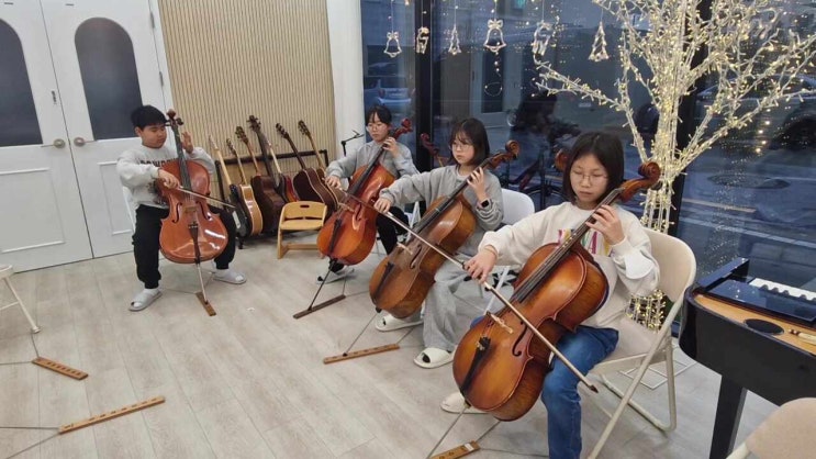 안녕하세요 덕은음악학원입니다 행복한 성탄입니다 덕은음악학원에서도 캐롤이 흘러나옵니다 늘 그리스마스가 있는 주에는 친구들과 캐롤 함께 연주합니다 영상의 연주자 친구들은 피아노를 메인으로 배우고 주1회 그룹으로 첼로를 배우고 있는 친구들임에도 처음 배운 곡을 바로 연주 할 수 있을 만큼 실력자들입니다 아이들은 그룹수업을 통해 서로 협력하고 생각하고 하나의 소리를 만들어가며 정서적으로 음악적으로 함께 성장합니다 서로 돌아가면서 음악을 리드하고 따라가며 리더로서 좋은 팀원으로서의 역량도 키워갑니다 덕은음악학원 프로그램입니다 첼로개인 첼로개인+ 첼로그룹 피아노 + 첼로그룹 피아노 기타그룹 드럼개인 덕은음악....... <img src="https://phinf.pstatic.net/image.nmv/blog_2025_12_24_2721/pbtO4SWa1U_03.jpg?type=f480x480" />