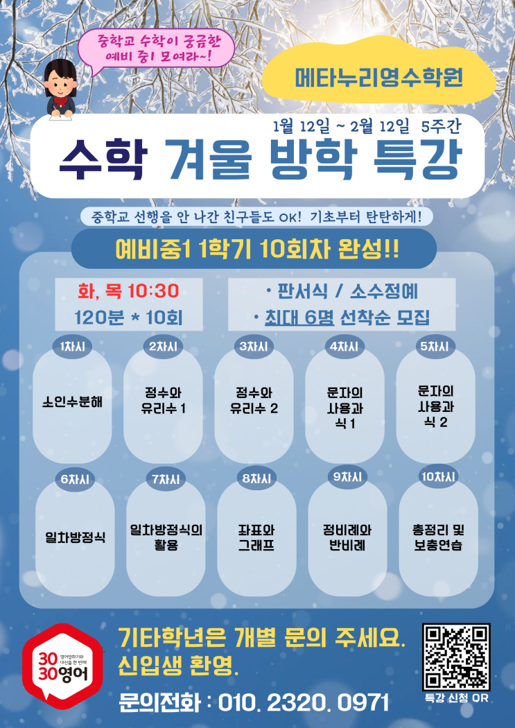[신원동 수학 학원] 예비 중1, 2, 3 수학 겨울방학 특강